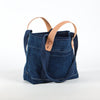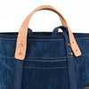 The beauty of our Dark Indigo canvas lies in its natural variation in hue. Each bag is unique, as the canvas is dyed using natural indigo and the color absorption is not uniform. The color will naturally fade over time, revealing the texture of the canvas. Sewn with contrasting white thread.