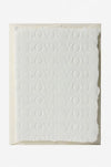 Handmade paper card with four full deckled edges, hand folded with inside blank. Front is letterpress printed; back is letterpress printed with a small note including information about the natural dyes used to color each unique piece of paper.