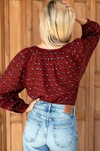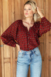 The Frances Blouse is made from breezy modal and organic cotton in a stunning red floral print. This style features a button front, shirred neckline and blouson sleeves with button cuffs. Perfect with denim for weekend strolls to dressier holiday occasions with a black pant.