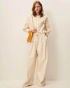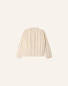 Crew-neck jacket with patch pockets in thick cotton linen fabric woven in Italy, featuring decorative stripes exclusive to Sessùn. Like a vintage baseball tee with a touch of luxe!