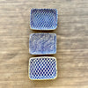 Features Terrafirma signature finishes of Braid, Dot and Taj in cobalt blue. Sold as a set of three. Dimensions : 6" x 4.5" x 1.25" each. Pair with our Tasting Tray to make it a party!