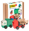 Each educational preschool toy truck comes with a flash card that shows the parts and how they go together. It's a simple puzzle that creates a sense of accomplishment and encourages creativity and the development of fine motor skills. The trucks are made with 30% maple fiber (sawdust from US furniture factories). The packaging is made with recycled cardboard and paperboard, and is packed with minimal wasted space.