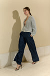 Cardigan jacket with a soft, fuzzy effect and contrasting color weave in deep navy and ecru. Front closure with snap buttons. Knitted in gauge 12. The lyocell is FSC-certified, ensuring environmentally responsible, socially beneficial, and economically viable forest management worldwide. An heirloom knit we can't get enough of.