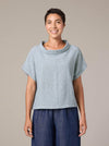 This springy top features a cowl neck, short sleeves, seam detail and a straight hem. Made in our favorite Cut Loose crosshatch fabric, this linen–cotton blend combines natural texture with a lightweight, breathable feel. The subtle woven pattern adds visual depth, while the fabric maintains structure and ease for everyday wear.