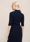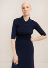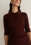 A ribbed knit polo with vintage charm. The Leona features a collared neckline and slim fit in a silk-enhanced blend that delivers softness and structure in equal parts.