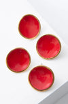 Handcrafted in Thailand, these porcelain post earrings are composed of a circle of brilliant orange-red porcelain rimmed in gleaming gold luster. Their surgical steel posts make these minimalist statement earrings perfect for sensitive ears.