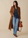 - Hip length; relaxed fit