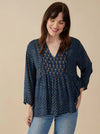 Bring some creativity to your day with this bohemian blouse, featuring an intricate deep blue floral print. The relaxed fit, 3/4 sleeves with elasticated cuffs and luxurious modal fabric make this a versatile top for any outfit.