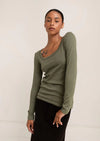 The easy-to-style square neck essential, this is a long sleeve designed to fit. It's made from 1x1 94% cotton 6% spandex rib — body-hugging, stretchy ribbed fabric with a cottony soft feel. An easy piece to wear and update your wardrobe.
