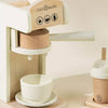 Let them turn into a barista with this wooden coffee maker and accessories set! Everything is there to concoct the most delicious creations: cappuccino, latte, macchiato, hazelnut coffee and more! They will have fun inserting the capsules into the coffee machine and stir the coffee in the tiny cup using the spoon.